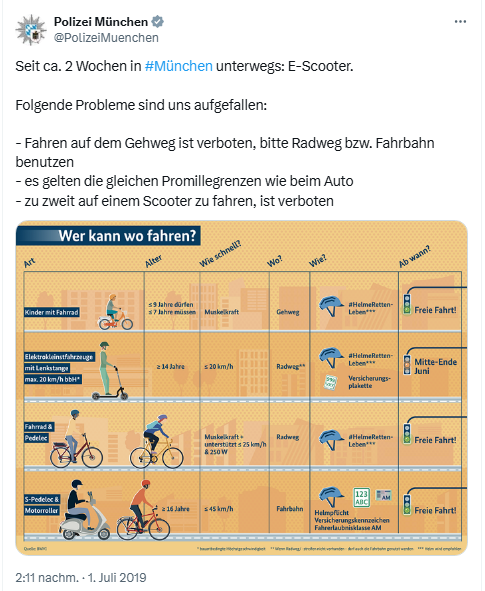 – zu zweit auf einem Scooter zu fahren, ist verboten— Polizei München (@PolizeiMuenchen) 1. Juli 2019