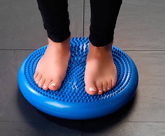 Alternativ können Sie auch Ihre Koordination trainieren, indem Sie zweibeinig oder auch nur auf einem Fuß darauf balancieren.