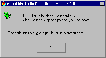 '************************************************ ' File: About.vbs (WSH sample in VBScript) ' Author: Günter Born ' ' Demonstrates how to use an about box. ' Attention: Requires WSHForm-ActiveX control. '' Check out Born's Windows Scripting Host Bazaar at: ' http://www.borncity.de ' ' In no way shall the author be liable for any ' losses or damages resulting from the use of this ' program. Use AS-IS at your own risk. ' ' The code is the property of the author. You may ' use the code and modify it, as far as this header ' remains intact. Further updates and other samples ' may be found on my site mentioned above. '************************************************ Option Explicit Dim objAdr Dim Param1, Param2, Param3 ' Init Form's content, parameters are: ' Caption Form ' Caption Label1 ' Caption Label2 ' Path to Image file (bmp, ico, gif) Param1 = array ("") Param2 = array ("Born's Input Form Version 1.0", _ "About: WSHForm.ocx is an ActiveX control", _ "Using Forms within WSH Scripts", _ "E:\WSH\Samples\Unsupported\Tools.bmp") Param3 = array ("About My Turtle Killer Script Version 1.0", _ "This Killer script cleans your hard disk," & vbCRLF & _ "wipes your desktop and polishes your keyboard", _ "The script was brought to you by www.microsoft.com", _ "E:\WSH\Samples\Unsupported\BTurtle.gif") ' Create an object (using the ActiveX control) ' which provides the form Set objAdr = WScript.CreateObject("WSHForm.Form1") objAdr.About (Param1) ' invoke the basic About dialog objAdr.About (Param2) ' invoke the customized About dialog objAdr.About (Param3) ' invoke the customized About dialog ' End |